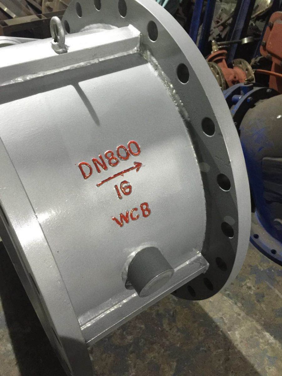 下圖是陜西西安的一老客戶訂做的HH47X蝶式緩沖止回閥,口徑800,壓力16公斤,橡膠密封,封閉性能好,生產(chǎn)周期為一個星期。