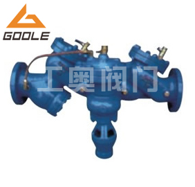 HS41X-A帶過濾防污隔斷閥由兩個隔開的止回閥和一個液壓傳動到泄水閥組成,第一個止回閥閥體內(nèi)裝有過濾網(wǎng)。由于止回閥的局部水頭損失,中間腔內(nèi) 的壓力始終低于入水口的壓力。這個壓差驅(qū)使泄水閥處于關(guān)閉狀態(tài),管路正常供水。在壓力異常時,(即出口端壓力高于中堅腔),即使兩個止回閥都不能反向密 封,安全泄水閥也能自動開啟將倒流水泄空,并形成空氣隔斷,保證上游供水衛(wèi)生安全。