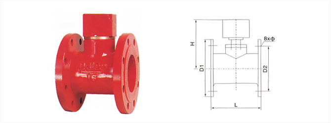 3、 ZSJZ型<法蘭式>水流指示器安裝采用三通法蘭直接同管道法蘭連接,適用于管徑100mm以上,三通管長度為180mm。