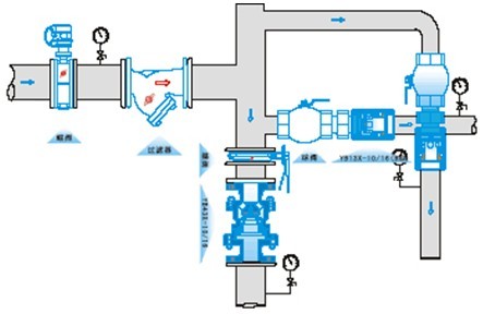 Y13X型比例式減壓閥在進(jìn)口壓力 流動(dòng)介質(zhì)的作用下,浮動(dòng)活塞被推開,介質(zhì)通過。由于活塞兩端截面積不同而造成的壓力差改變了閥后的壓力,也就是在管路有壓力的情況下,活塞兩端的面積比構(gòu) 成了閥前與閥后的壓力比。無論閥前壓力如何變化,閥后靜壓及動(dòng)壓按比例可減至相應(yīng)的壓力值。
