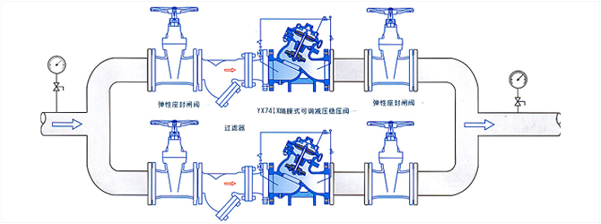 四、YX741X隔膜式可調(diào)減壓穩(wěn)壓閥安裝演示圖: