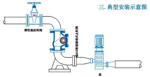 四、HQ41X滑道滾球式止回閥安裝示意圖: